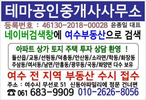 [여수공동체 광고운영 공지사항] 무료로 광고할 수 있습니다. 회원님이 직접 올리시면 됩니다. 광고 문의는 고객센터로 전화 또는 게시판에 글 남겨주시면 됩니다.