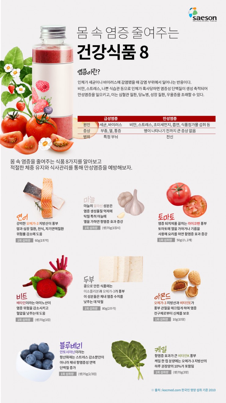 몸 속 염증 줄여주는 건강식품 8