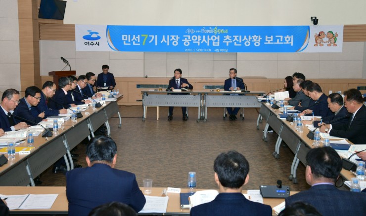 여수시 권오봉호, 취임 8개월 만에 공약 이행률 48.9%…‘순항’- 5일 오후 시청 회의실서 ‘민선7기 공약사업 추진상황 보고회’ 열려