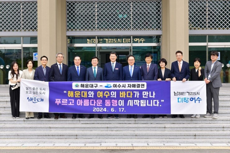 이날 정기명 여수시장은 “서로 닮은 두 도시가 이번 협약으로 상생발전을 꿈꾸게 되어 더욱 기쁘고, 우정을 넘어 굳건한 동반자가 되길 바라며”라며 “세계적인 도시인 해운대구의 ‘2026여수세계섬박람회’ 성공개최를 위한 든든한 지지를 기대한다”라고 전했다.