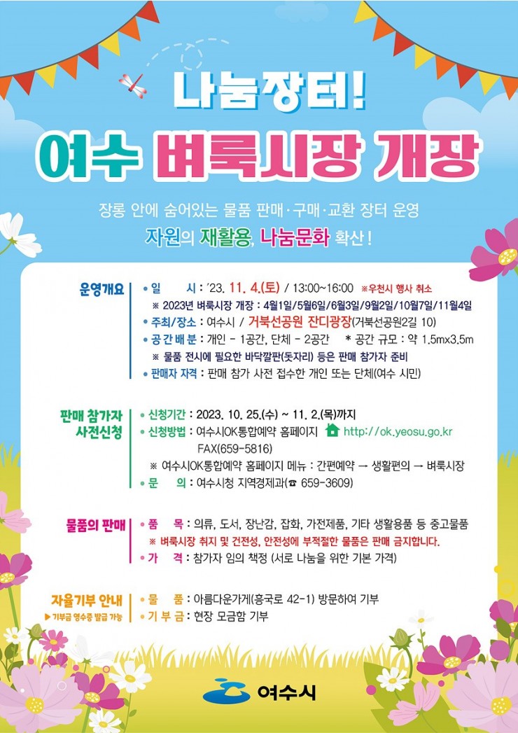 올해 마지막 나눔장터! 여수 벼룩시장, 11월 4일 ‘개장’