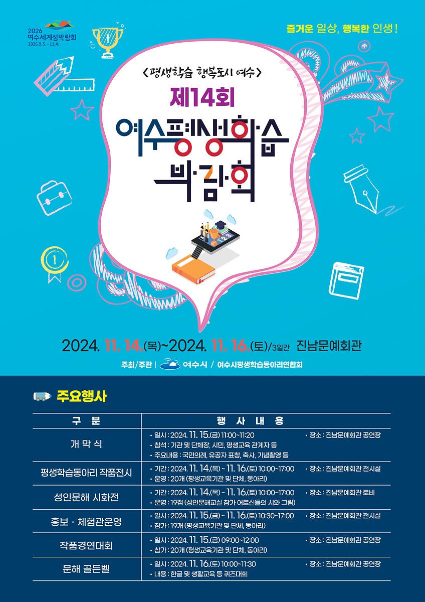 ‘제14회 여수 평생학습박람회’ 오는 14일 개최