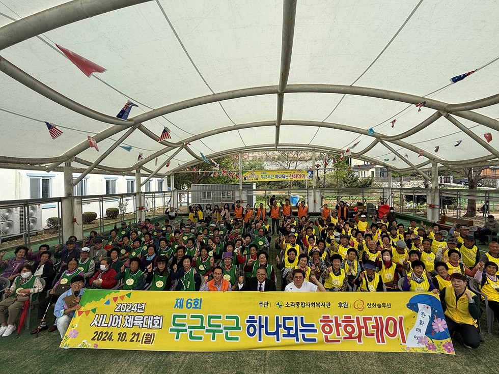 소라종합사회복지관(관장 정성훈)은 지난 21일 한화솔루션㈜의 후원으로 어르신 체육대회 ‘두근두근 하나 되는 한화데이’를 개최했다.